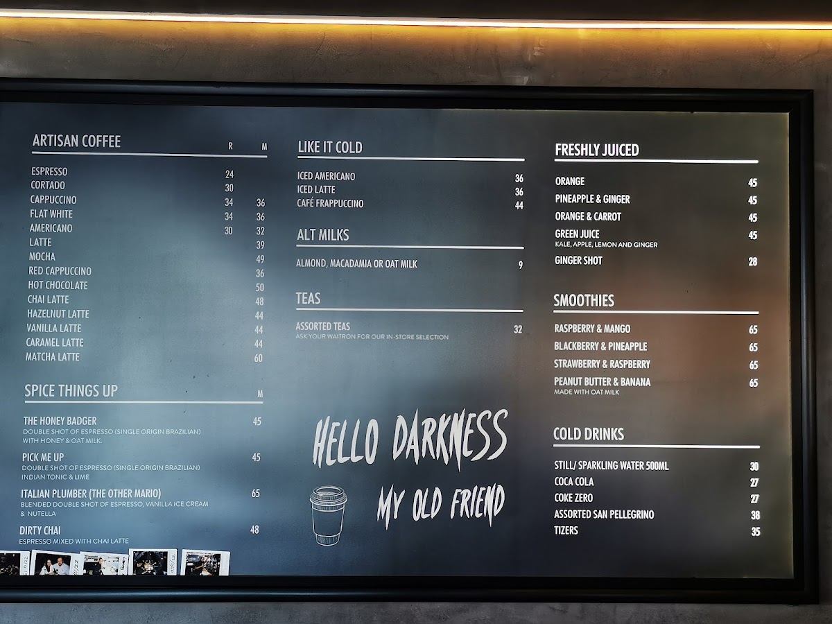 Shift Espresso Bar on Kloof Street offers a menu that expertly blends comfort and creativity, making it a perfect spot for both a quick bite or a leisurely meal. Among its standout items, the Cappuccino Coolest One Ever is a must-try, boasting a rich, smooth flavor that’s perfect for coffee lovers. For those craving something more substantial, the Avo Chicken Burger is a delightful choice, with tender chicken paired with creamy avocado, all sandwiched between a soft bun. The menu maintains a balance between simple and indulgent options, ensuring there’s something for every palate. Whether you're stopping by for a coffee break or enjoying a satisfying lunch, Shift Espresso Bar promises a delicious experience with every dish.